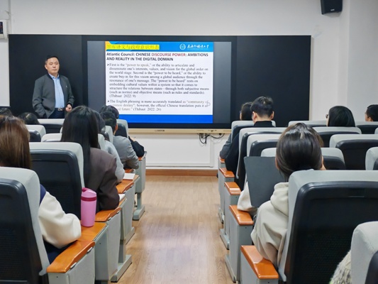 韩子满教授指出,西方智库将大量我国出版或发表的文献翻译为英语,是近年来非常值得关注的一种翻译现象。他通过梳理西方智库涉华翻译现状、相关智库/项目与政府的关系,阐述了智库翻译具有鲜明的国家性,是另外一种语境下的国家翻译实践。韩教授特别强调中国译者要主动作为,以术语翻译为桥梁,推动中国话语体系和思想文化的国际传播。现场交流环节,与会师生积极提问,与韩教授就中华文化外译等问题进行了深入探讨。