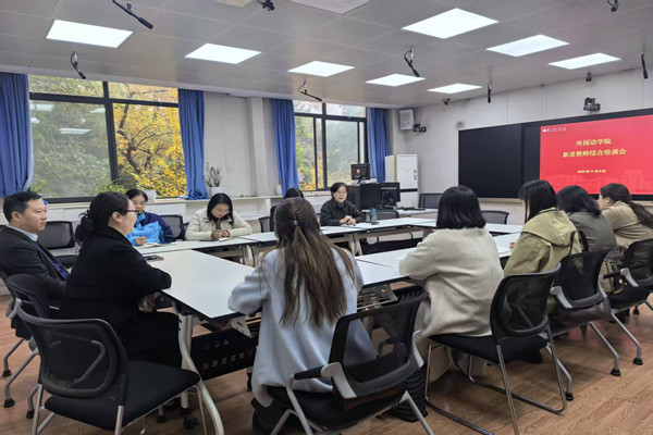 在东二楼205会议室召开新进教师综合培训会。会议由院长陈文凯主持,学院党政班子成员、大学英语教学一部主任、教学二部主任、青年教师代表及两名新进教师参加会议。