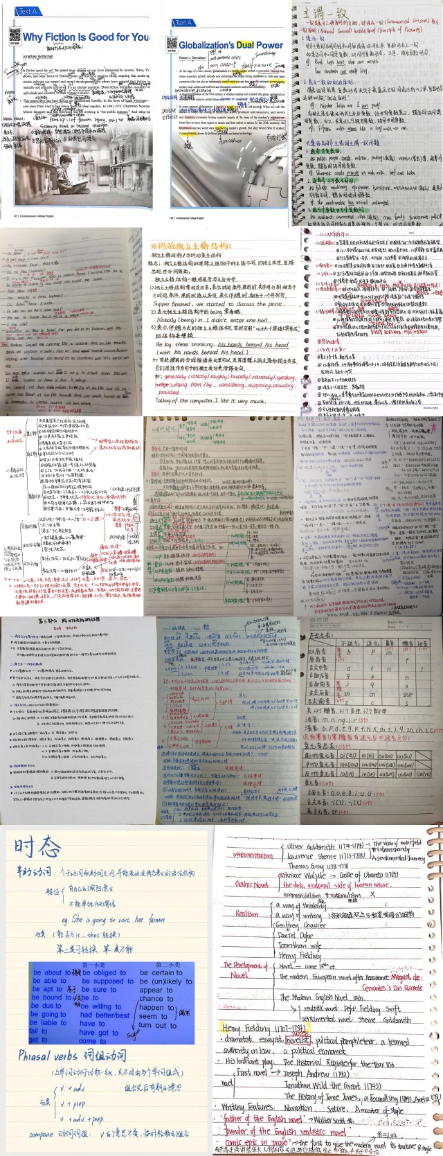 本次活动面向学院全体学生开展,得到同学们的积极响应,共征集到各类笔记作品60余份。参赛作品内容覆盖面广,涵盖语法课、专业核心课等多门学科,形式丰富多样,不仅包含清晰完整的知识框架、重点突出的内容标注,更融入了同学们的个性化理解与学习感悟,充分展现了扎实的学习功底与高效的总结能力。经学院严格评审,最终遴选出入围的9份优秀笔记作品,将代表学院参加校级优秀学习笔记评选。