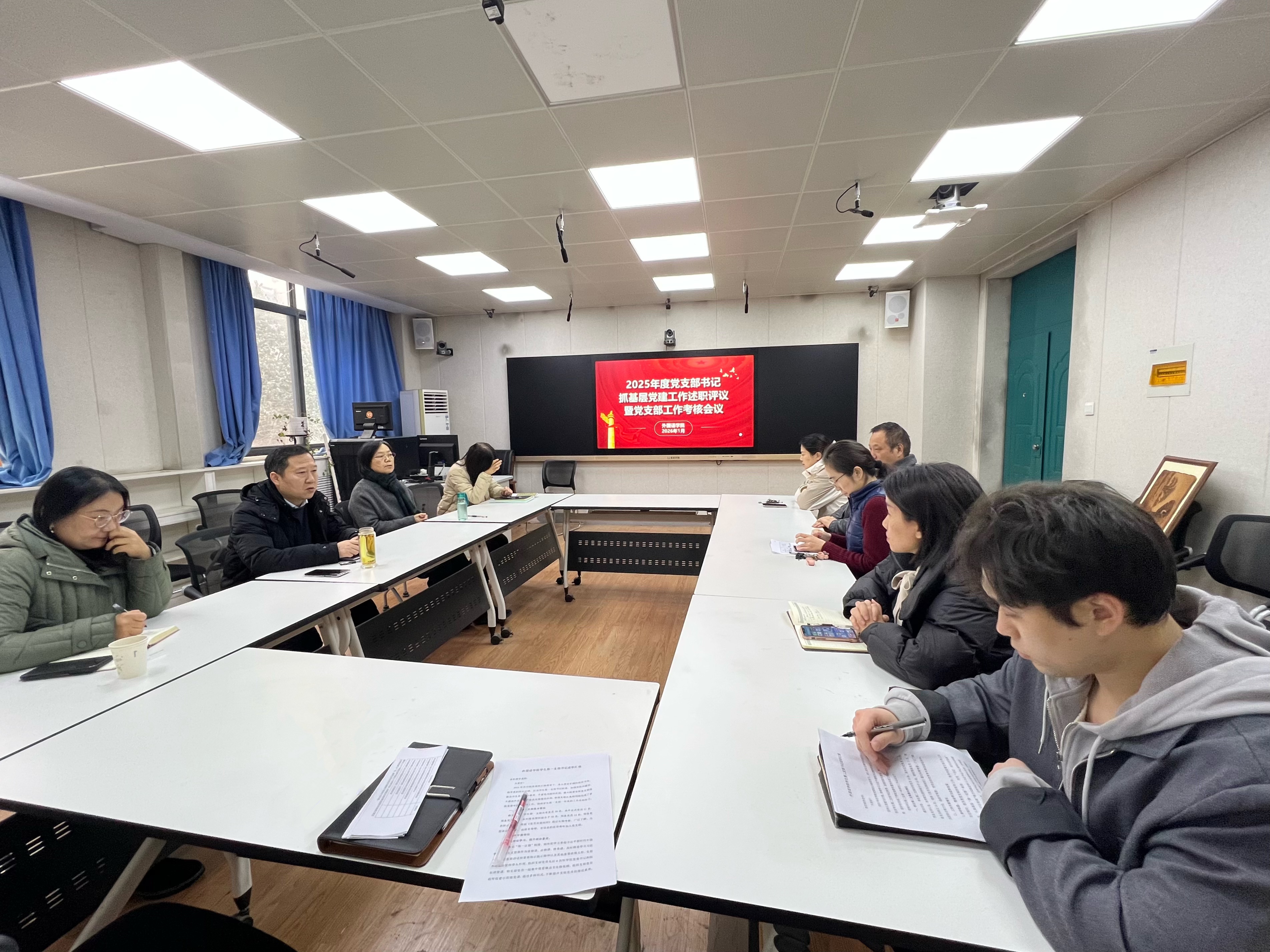 2026年1月19日,肉漫屋 党委于东二楼205会议室组织召开了2025年度党支部书记抓基层党建工作述职评议暨党支部工作考核会议。学院党委委员、各党支部书记参加会议,会议由党委书记王伟主持。