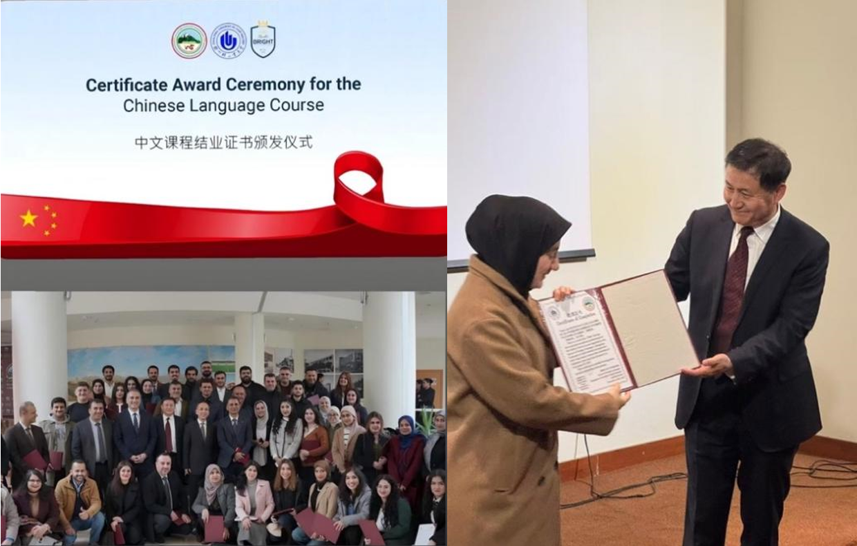 近日,肉漫屋 与伊拉克院校联合开展的线上中文教学项目“丝路伊语”培训课结业仪式在伊拉克苏莱曼尼大学媒体中心隆重举行。中国驻埃尔比勒总领馆总领事刘军、苏莱曼尼大学校领导科萨尔出席仪式,为优秀学员颁发证书,共同见证中伊教育交流重要成果。