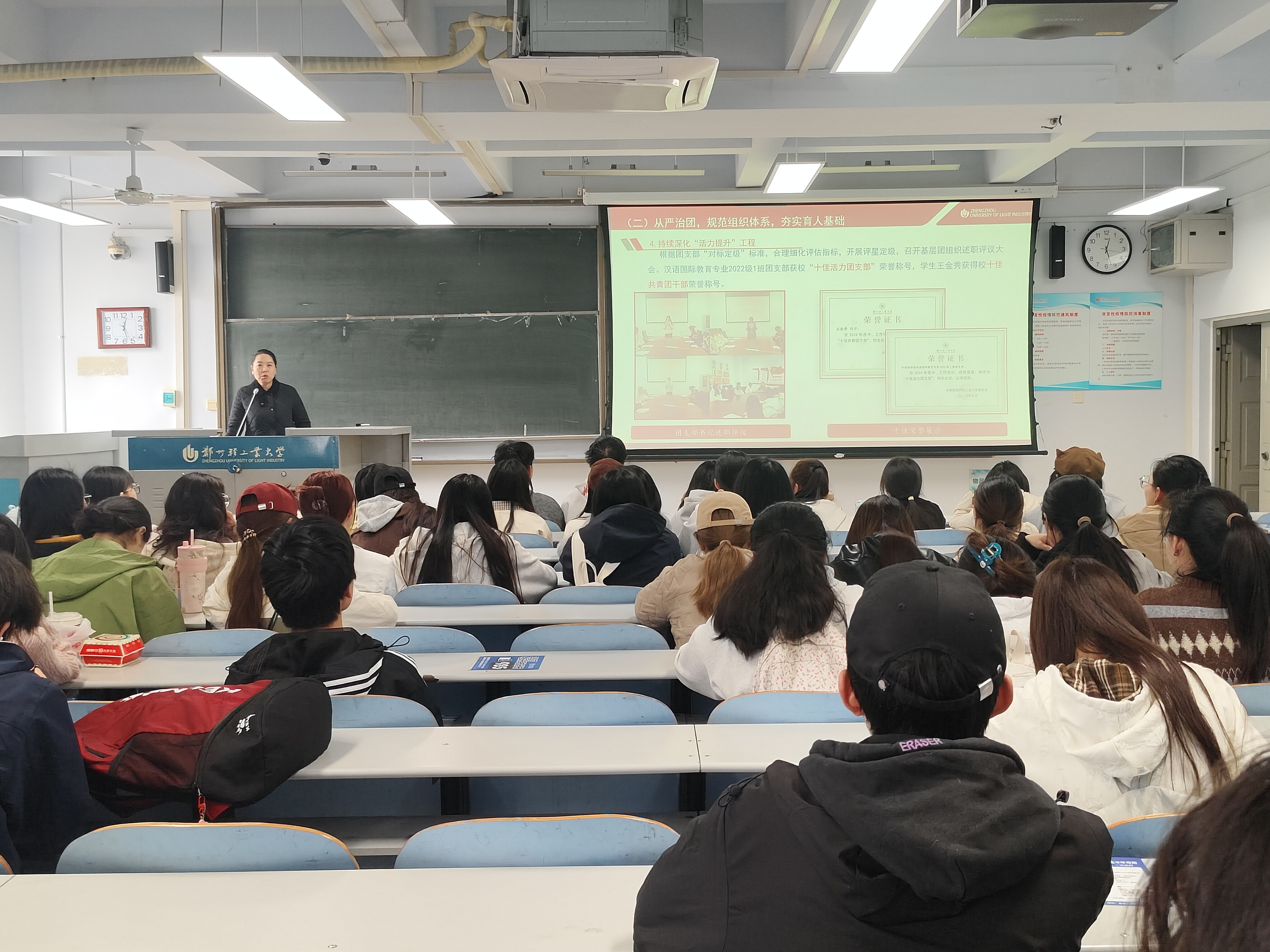 学院团委书记苏老师梳理了新学期重点工作,回顾了过去一年在思想引领、组织建设、实践育人、品牌打造等方面取得的成效,并指出下一步努力方向。她勉励同学们重视提升政治素养,不断强化责任意识和服务意识,积极参与实践锻炼,为未来发展积蓄坚实力量。
