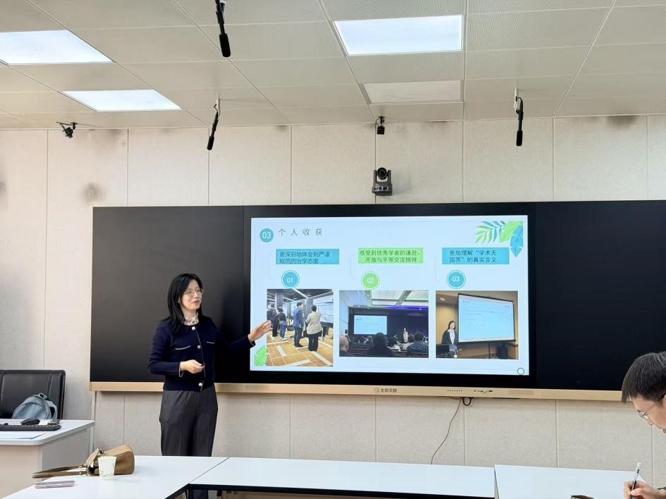报告中,黄梦迪博士结合到美国参加应用语言学学会(AAAL)2026年会经历,介绍了会议的基本情况、主要议题及国际应用语言学领域的最新研究动态,与会教师围绕应用语言学研究热点、国际会议论文准备、学术交流能力提升等问题进行了深入讨论。大家一致认为,此次分享内容充实、信息量丰富,不仅加深对国际学术会议的了解,也为今后开展高质量学术研究和国际交流提供了有益借鉴。